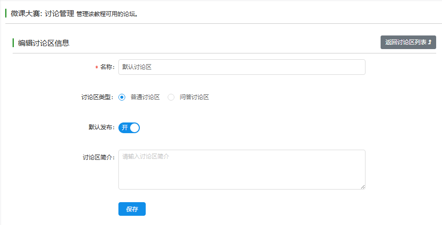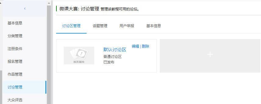 点击'编辑'进入讨论区编辑页面,可以修改基本信息。
